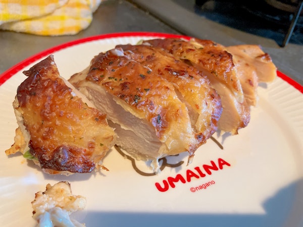 鶏むね肉のローストです!!中にシチューが入っていてとっても、とってもおいしい、、特別感があります✨