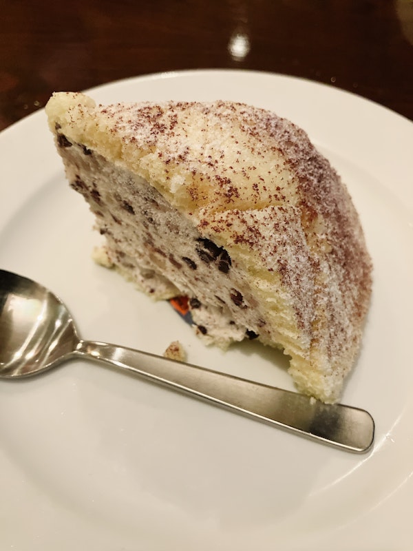 外はふわふわケーキ、中はアイスで、ナッツの食感がとても楽しい!