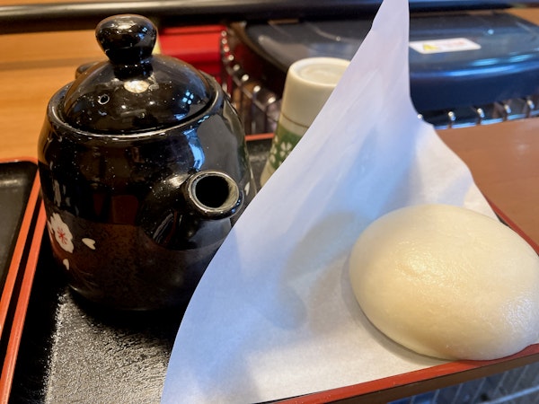 店内利用、酒まんじゅうと緑茶のセットです!!(確か470円程度)